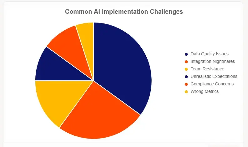 Data quality is often the top hurdle. Clean, standardized data ensures AI agents perform accurately. Other challenges include team resistance and integration issues, which can be mitigated with proper planning and training.